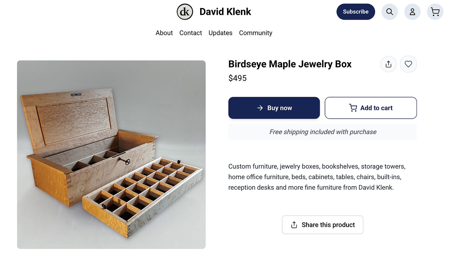 The product listing pages went through a big overhaul. About half of the traffic to these pages is consistently from desktop, and half from mobile, so we wanted to make sure the page looked great in any scenario. Previously, the page had been designed for mobile, but didn’t do much differently for folks using the wide screen. The two-column layout now covers more of the screen for buyers visiting on desktop browsers, and still collapses nicely into a single column for mobile devices. Multiple images, variants, customizations, and more all should work well. Take a look and let us know any feedback!